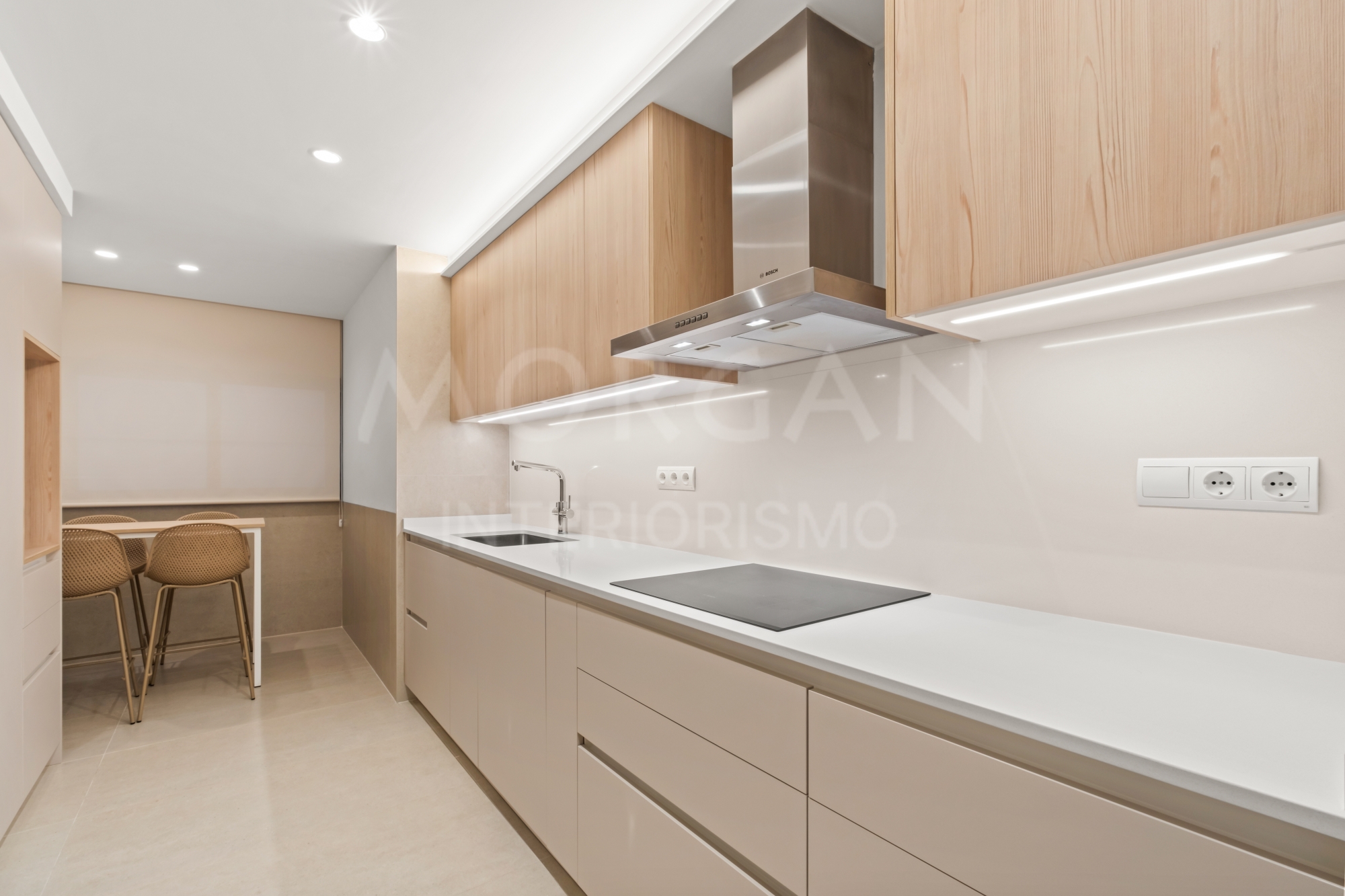 Una cocina diseñada para maximizar cada centímetro, mejorando la distribución y potenciando la entrada de luz natural. Un espacio renovado que combina funcionalidad, amplitud y elegancia, pensado para disfrutarse cada día.